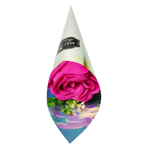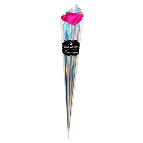 Plastic Rose &Small Flowers w/Stem in Colorful Metallic Traslucent Wrapper w/”Best Wishes” Greeting (Fuchsia Pink)
