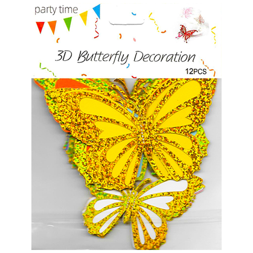 3D Butterfly Decorations x12s (6Small & 6Big) (Gold)