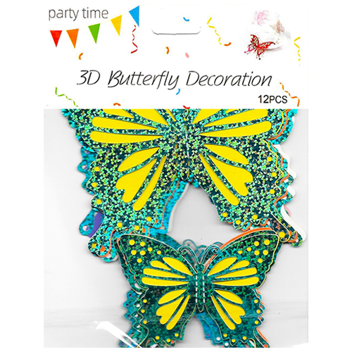 3D Butterfly Decorations x12s (6Small & 6Big) (Light Blue)