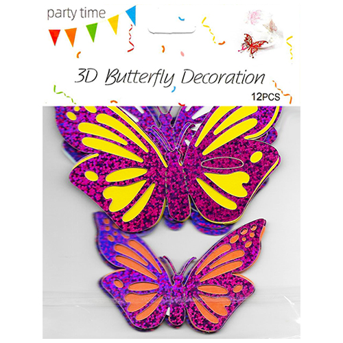 3D Butterfly Decorations x12s (6Small & 6Big) (Pink)