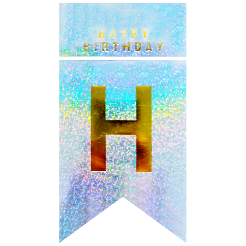 Flag Banner Small “Happy Birthday” Laser Board w/Stamping (Silver)